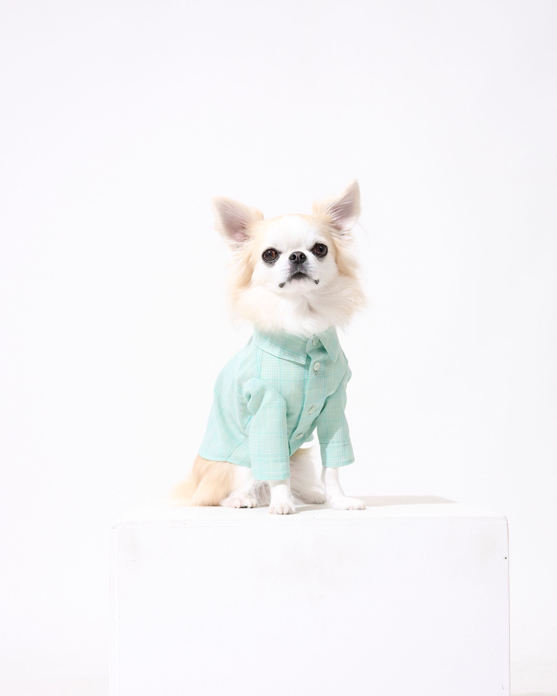 お洒落なチェックのレギュラーカラーシャツを仕立てました。