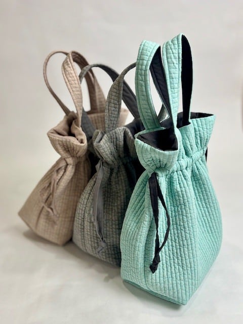 軽くて柔らかな風合いのヌビ生地を使用した巾着バッグ。