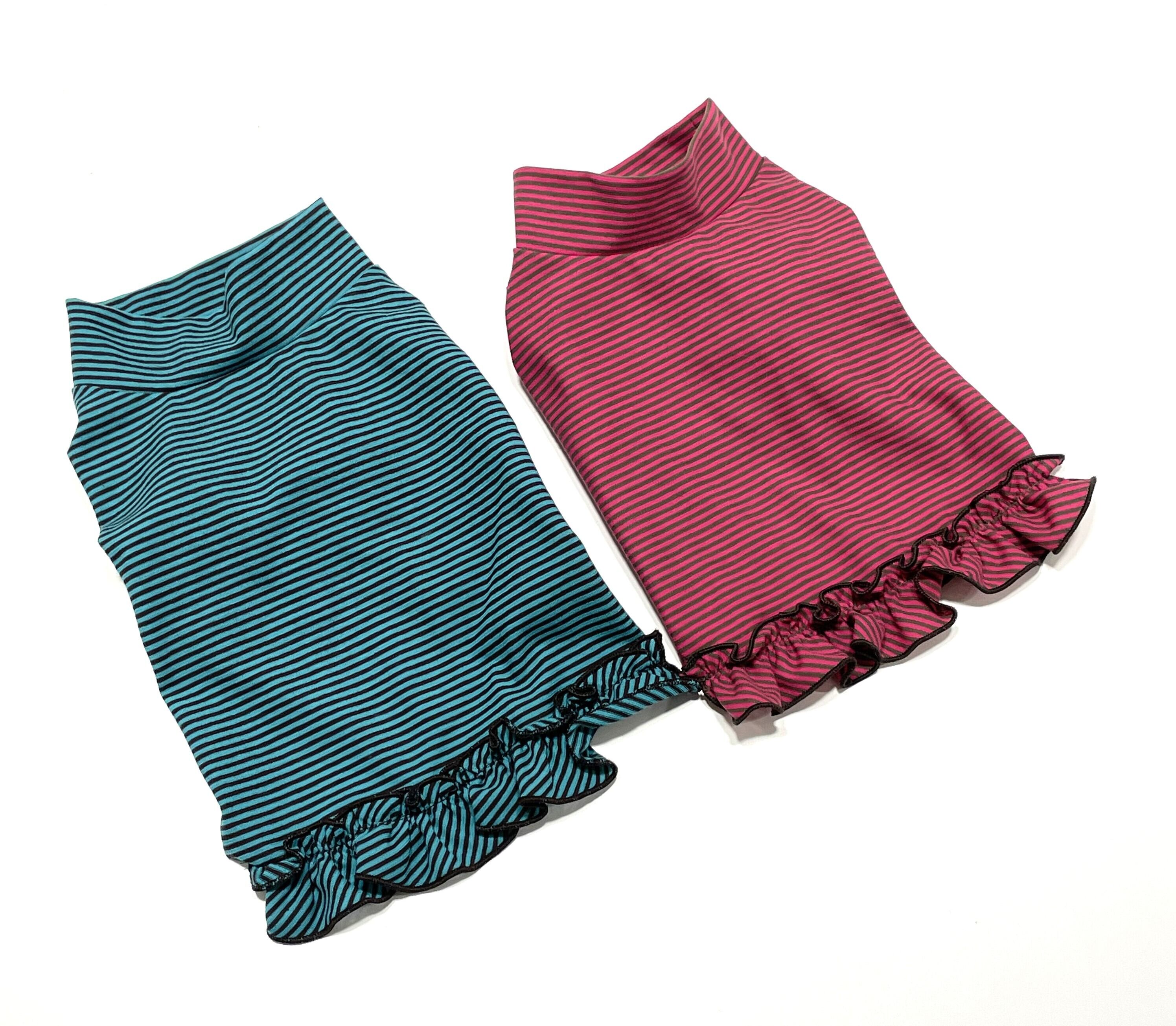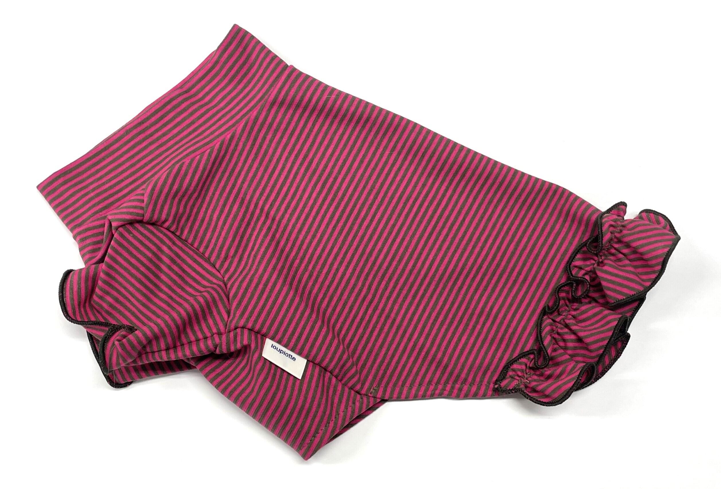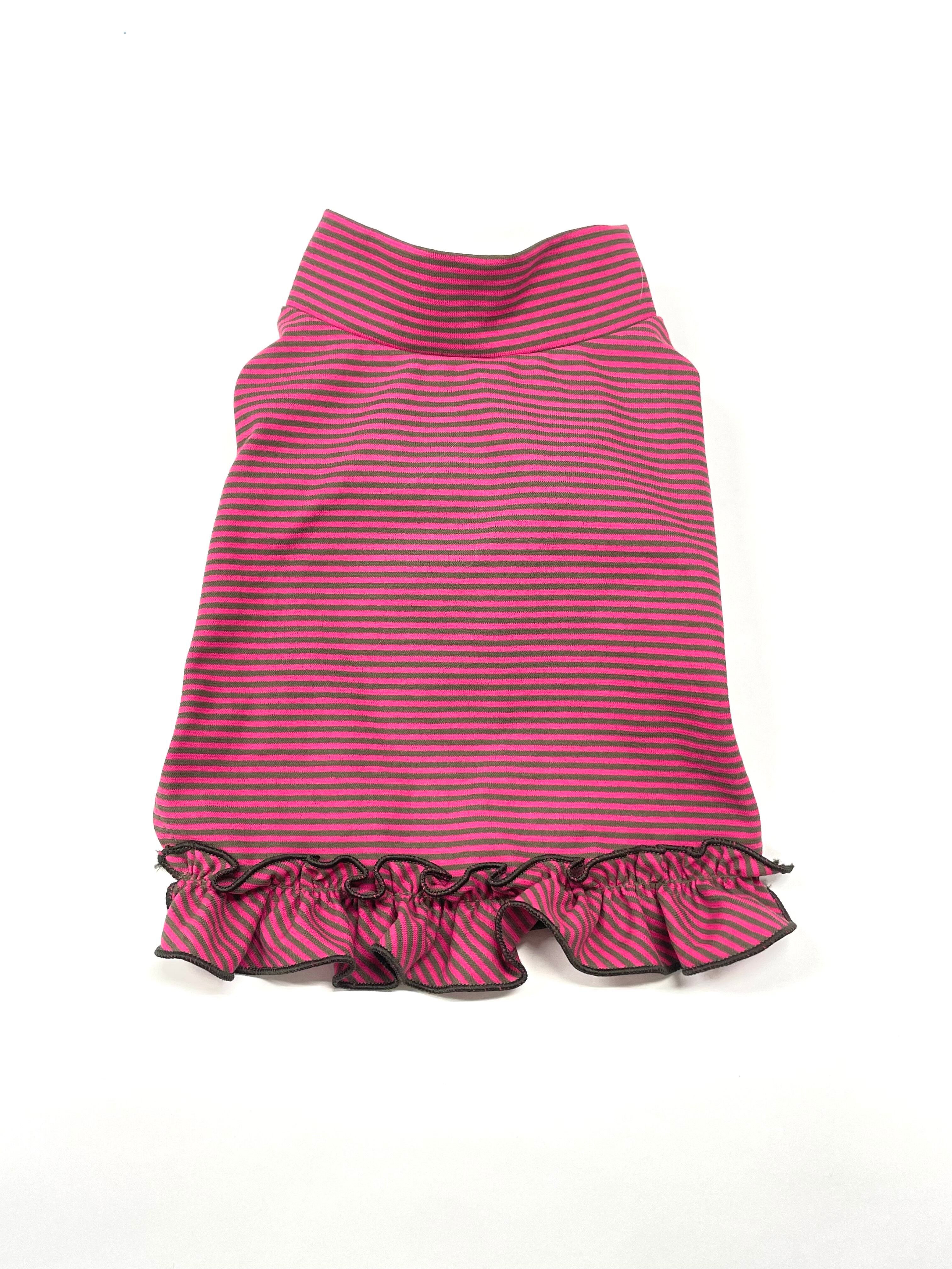 天竺細ボ-ダ- フリルプルオ-バ- ピンク✕カ-キ